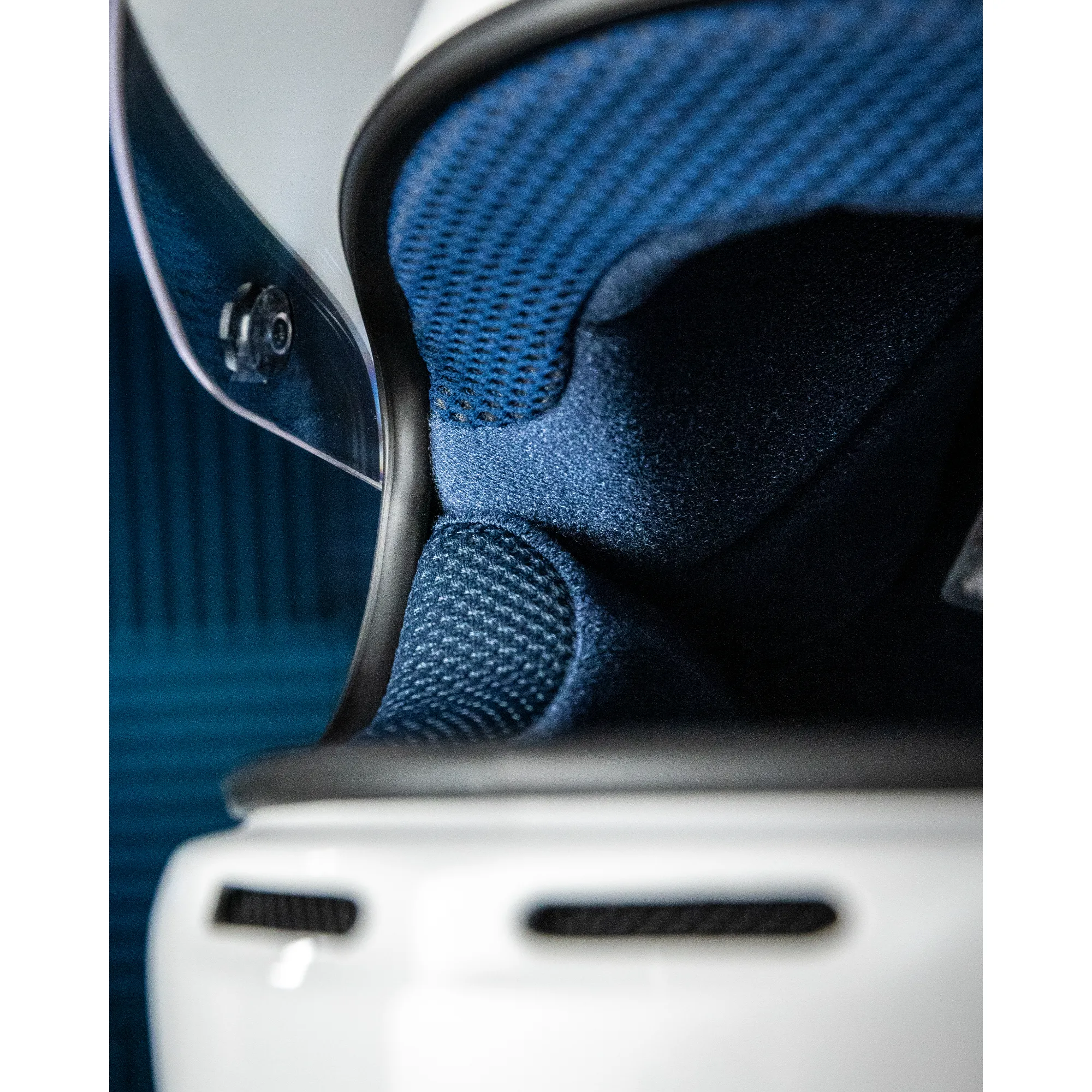 The design of the Arai CK-6 junior kart helmet incorporates many of the features seen on the professional motorsport range and includes a unique 4 point inlet/outlet venting system with a dual chin vent, a washable coolmax material inner lining and a lightweight 2mm visor with tear off posts and the new advanced visor pivot system seen on the GP series. This is the go-to helmet for young karters and those older karters looking for an extremely lightweight karting helmet with a large viewing aperture.