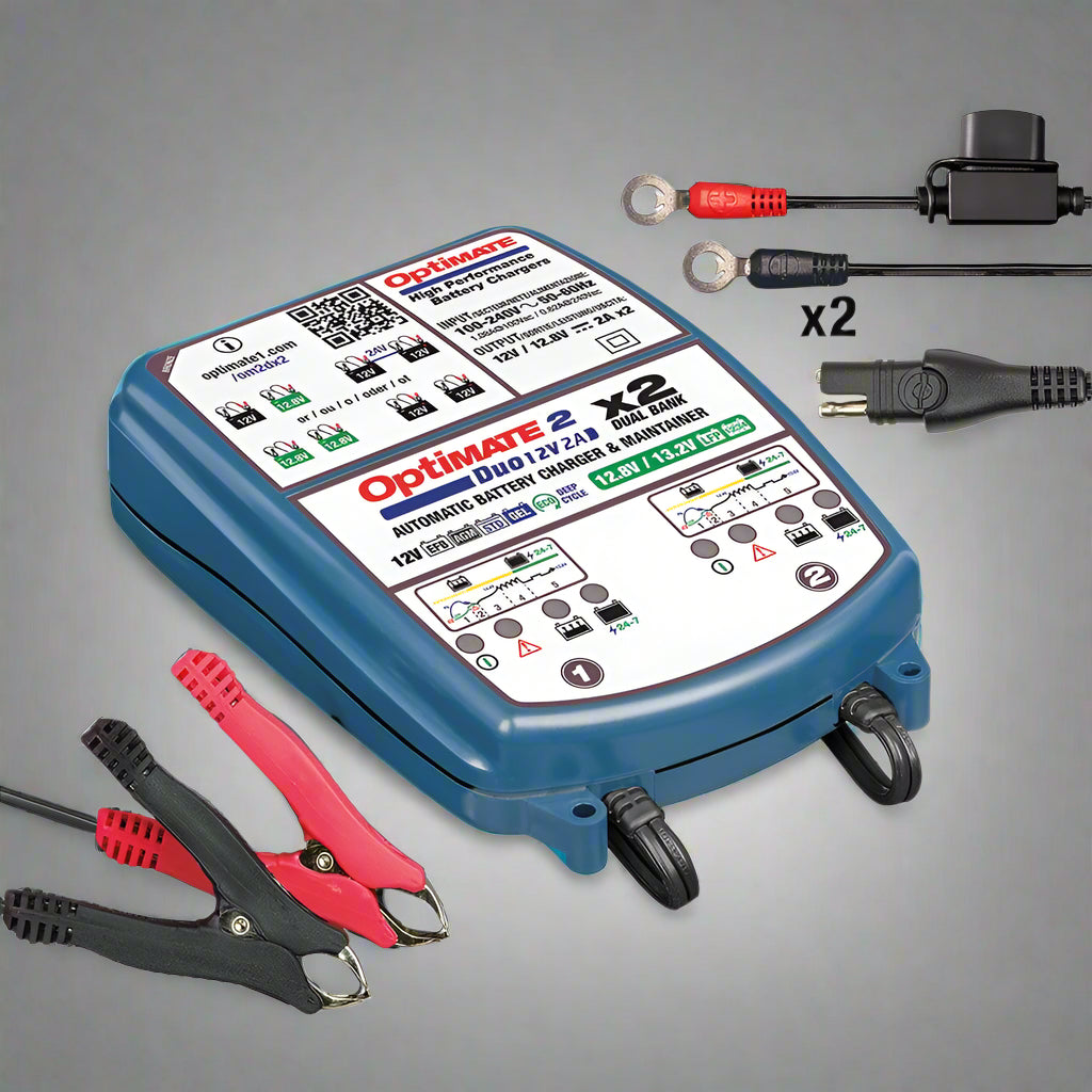 OPTIMATE 2 Duo (Lithium / Standard) - x2 DUAL Bank Car / Kart Battery Charger